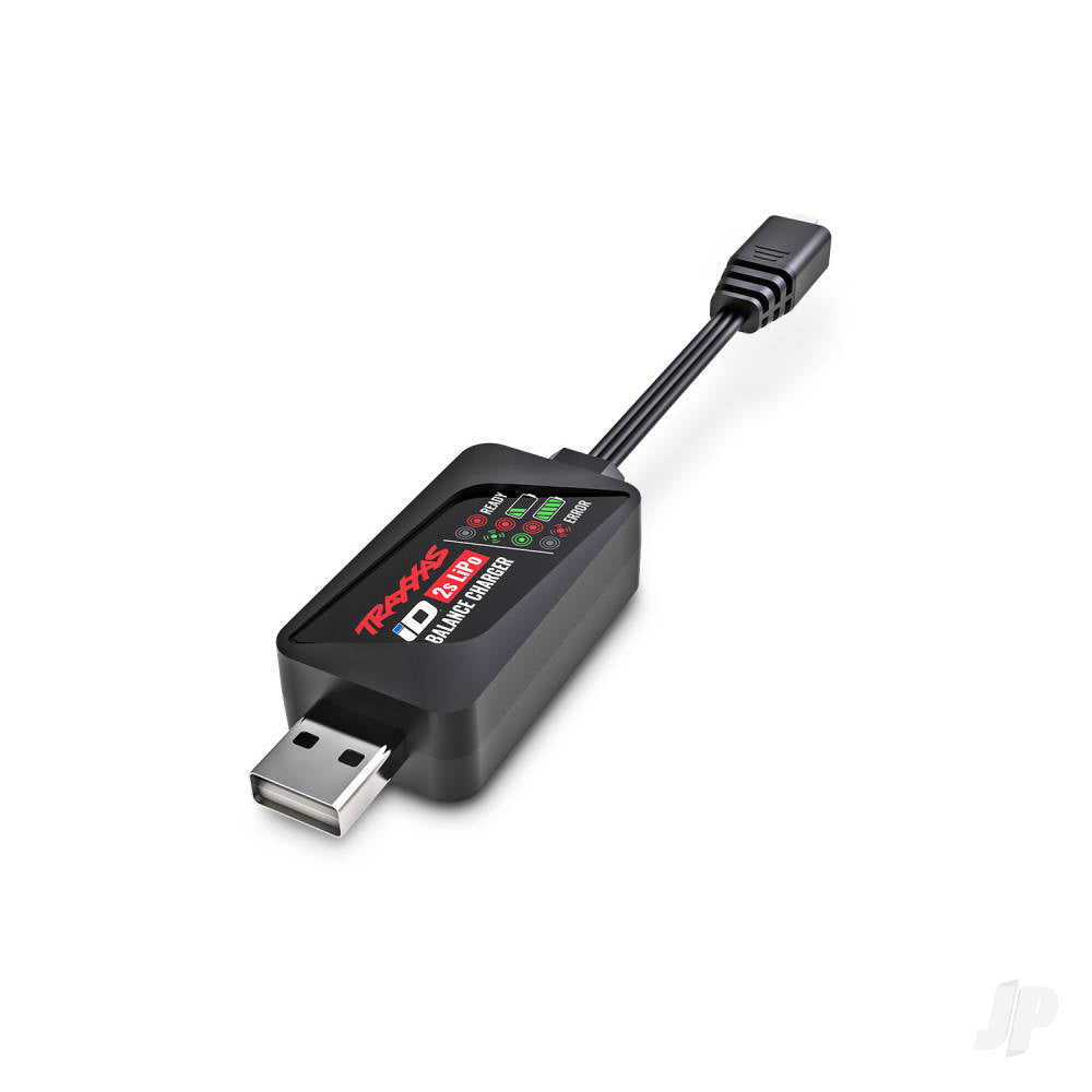 A high-capacity 750 mAh 2-cell LiPo battery provides over an hour of runtime with 7.4 volts of high-performance power and Traxxas iD safety and simplicity. The included USB-powered charger provides quick and reliable fast charging at up to 2-amps of charging capability.